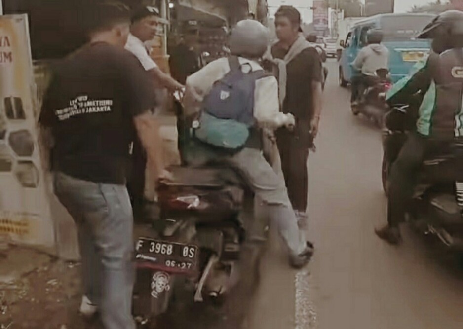 Kali ini, seorang pengendara sepeda motor yang melintas di Jalan Raya Bogor tepatnya sebelum persimpangan Pekapuran, Cimanggis, Depok, Jawa Barat dihentikan sekelompok orang yang diduga mata elang atau debt collector, Senin(14/7/2025).